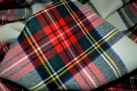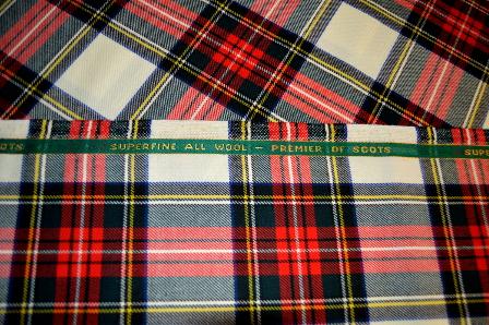 100% Schurwolle, Original schottischer Tartan, Premier of Scots, Farbe grün und rot kariert auf weiß mit feinem Gitterkaro in blau und gelb, Rest Breite 150 cm x 2m, geeignet für Kleider, Röcke, Hosen, Jacken