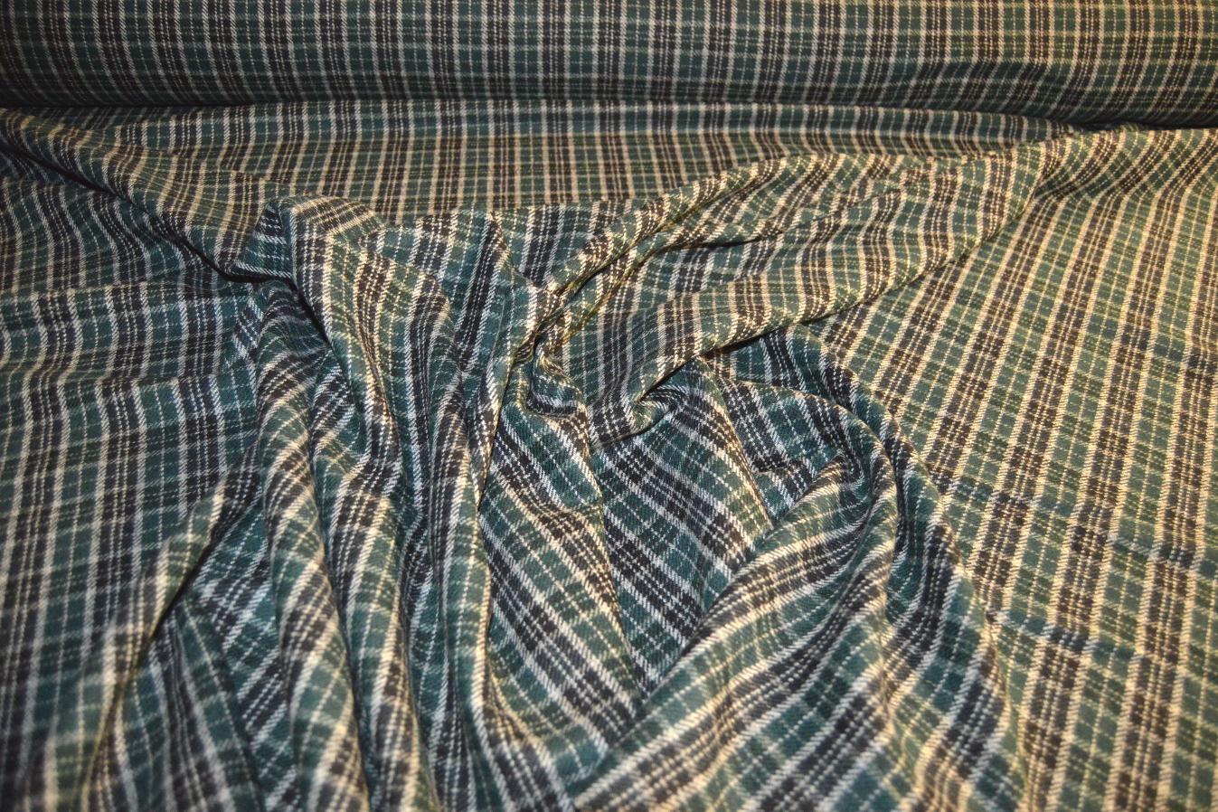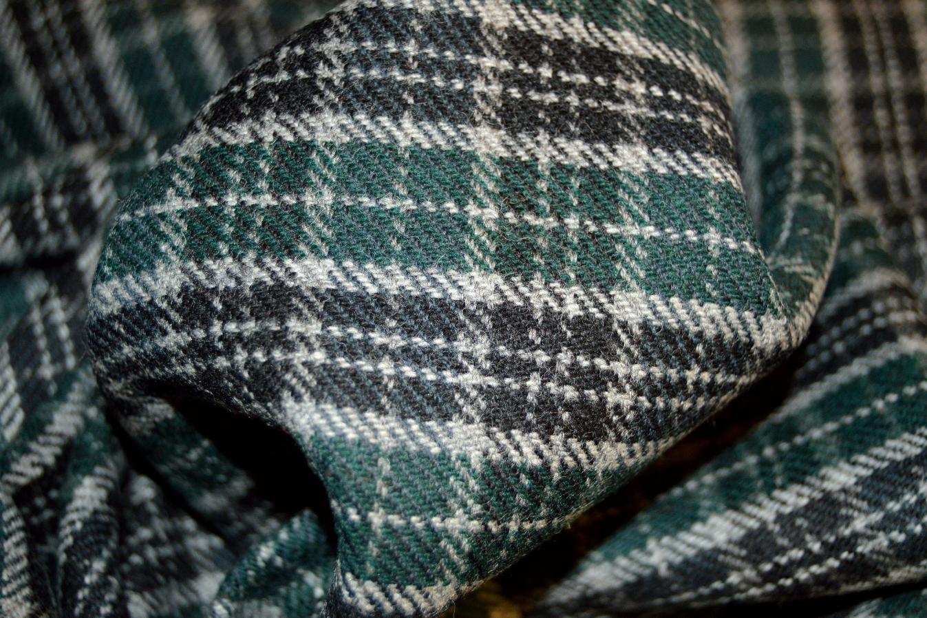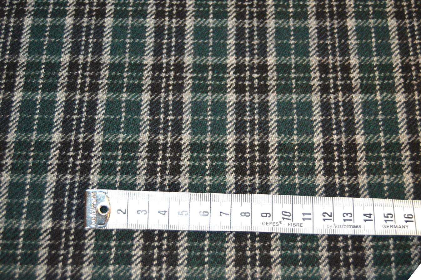 100% Schurwolle, weichfallende Ware, Farbe dunkelgrün, schwarz und lichtgrau kariert, Breite 160cm, geeignet für warme Kleider, warme Hosen, Röcke, Jacken, Übergangsmäntel